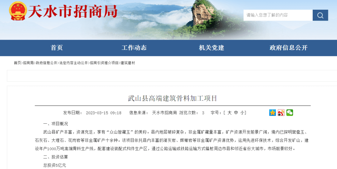 超11億噸儲(chǔ)量年產(chǎn)砂石4000萬(wàn)噸!甘肅天水2個(gè)高品質(zhì)骨料項(xiàng)目合計(jì)投資23億元!
